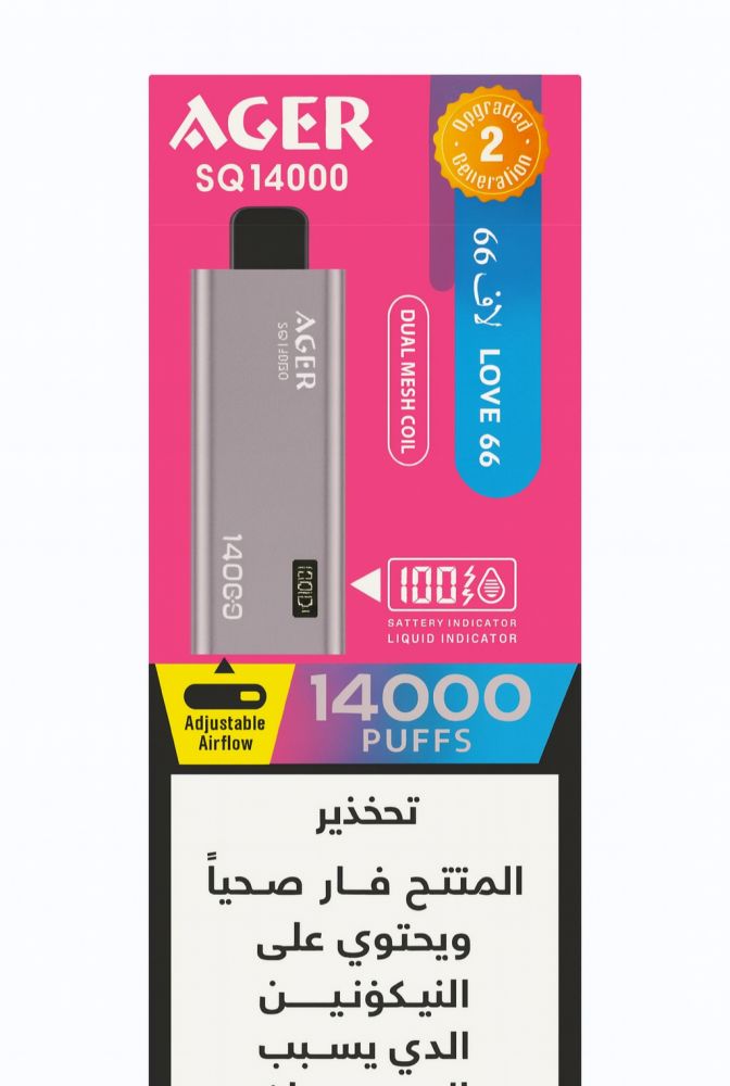 إذا كنت تبحث عن جهاز فيب يدوم طويلاً بنكهات متنوعة وأداء فائق، فـ Ager SQ 14000 Puff هو الخيار المثالي لك.