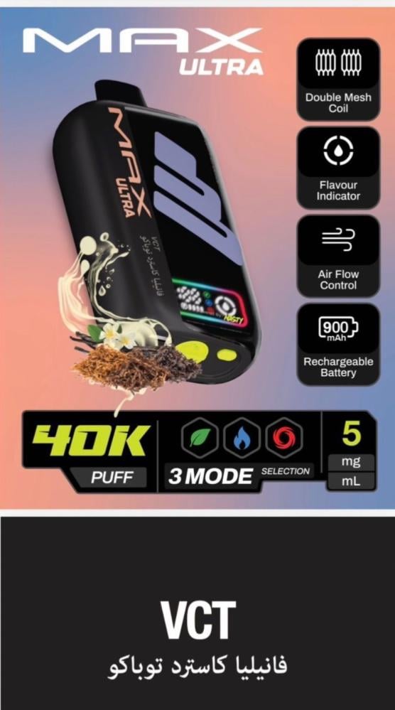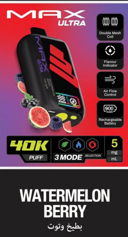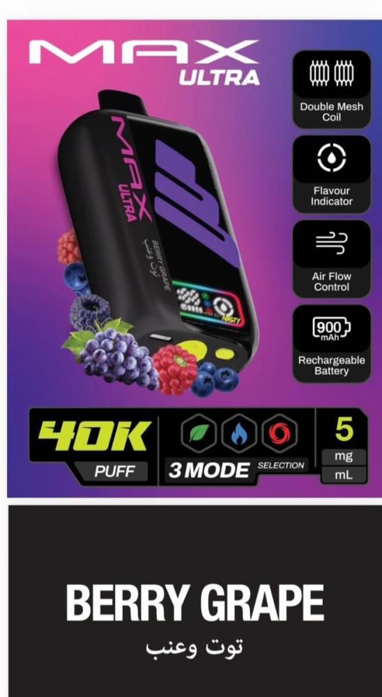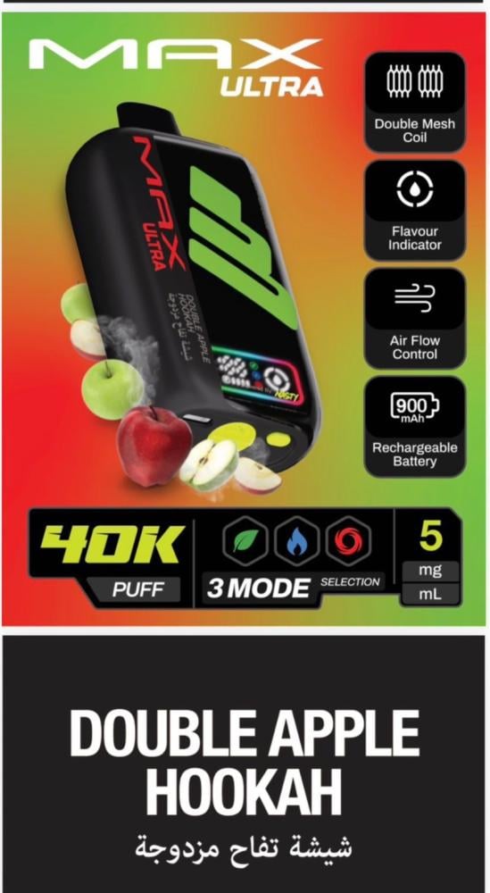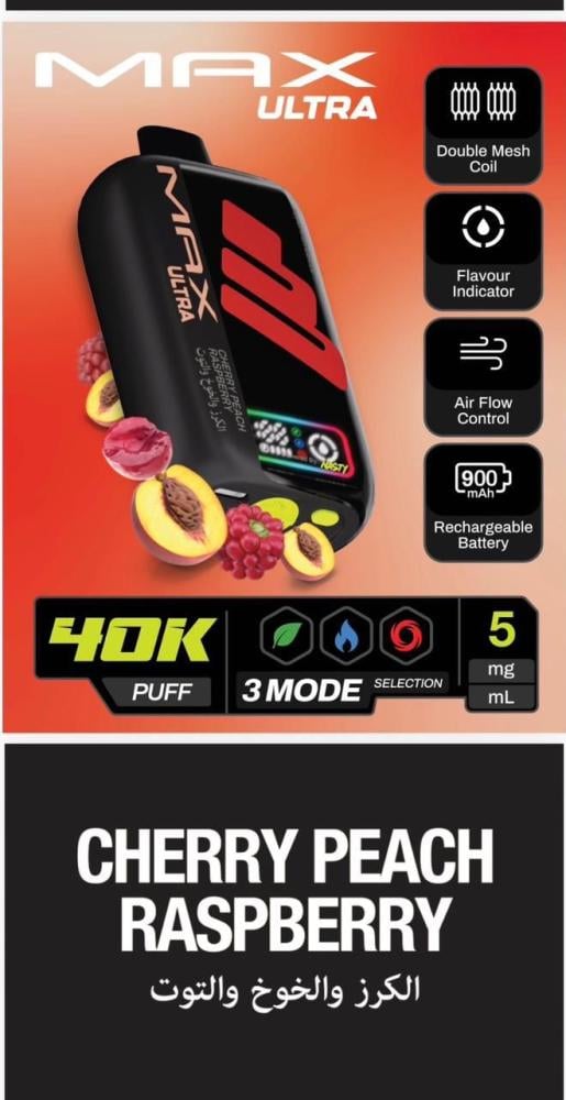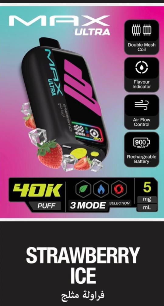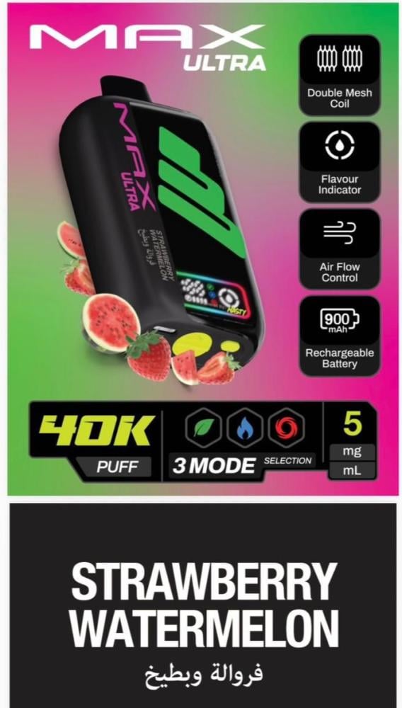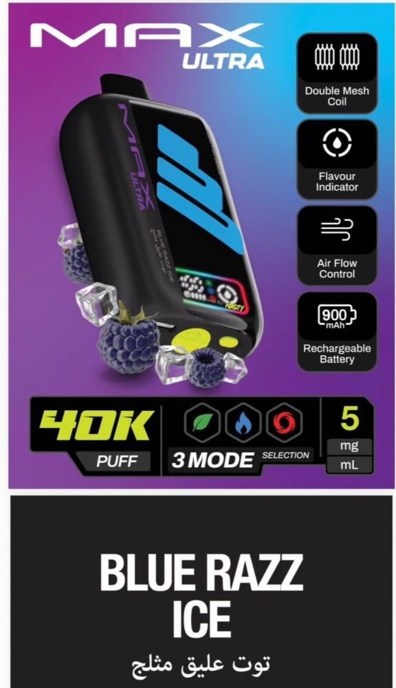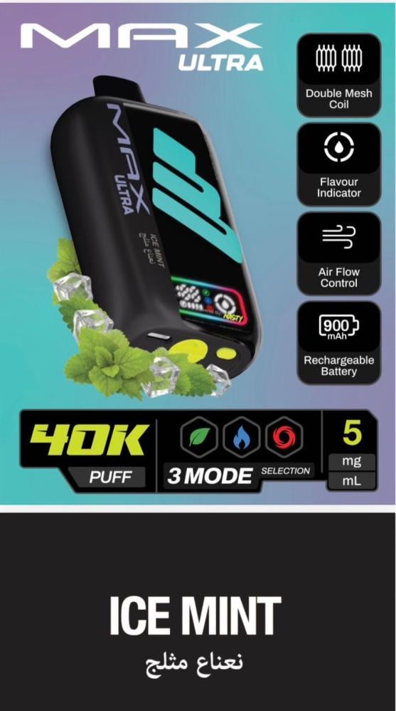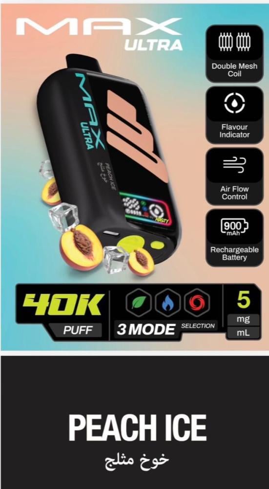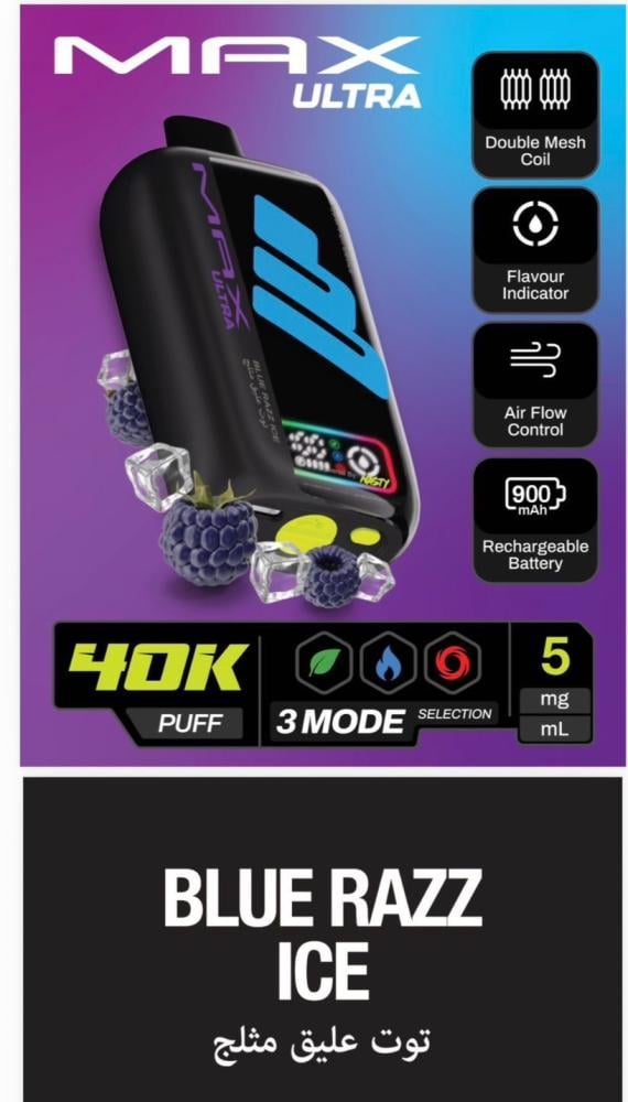 جهاز سحبة ناستي ماكس ألترا 40 ألف سحبة 50 نيكوتين – NASTY MAX ULTRA 40K Puff هو أحد أقوى وأحدث الابتكارات من شركة Nasty العالمية الرائدة في صناعة منتجات الفيب. يأتي هذا الجهاز ليجمع بين الأداء القوي، التصميم العصري، والسعة الكبيرة التي تمنح المستخدم تجربة تدوم طويلاً بدون الحاجة للتغيير المتكرر. إذا كنت تبحث عن جهاز فيب عملي يجمع بين سهولة الاستخدام والقوة، فإن ناستي ماكس ألترا 40K هو خيارك المثالي.