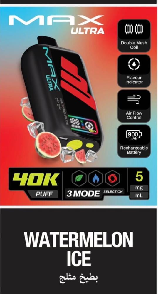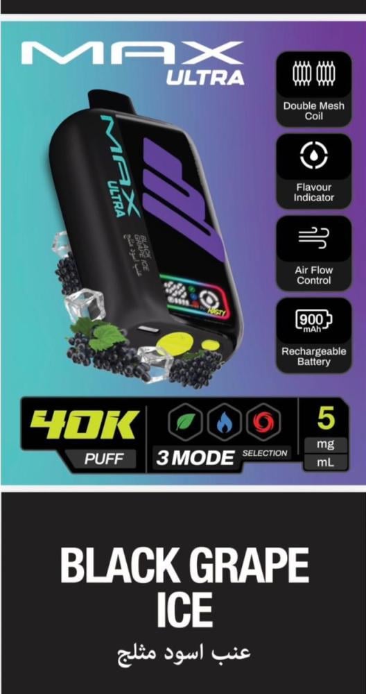 إذا كنت تبحث عن جهاز فيب قوي، عملي، طويل المدى، يجمع بين التكنولوجيا الحديثة والنكهات الغنية، فإن جهاز سحبة ناستي ماكس ألترا 40 ألف سحبة 50 نيكوتين – NASTY MAX ULTRA 40K Puff هو خيارك الأمثل
