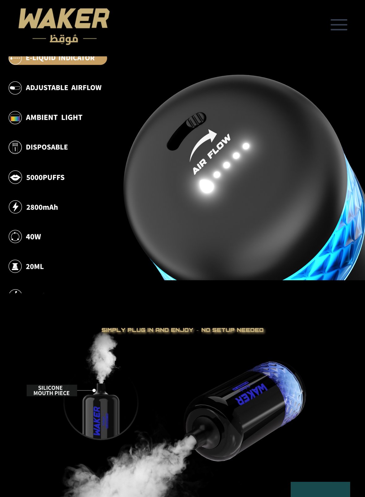 مع رأس الشيشة الإلكتروني WAKER SHISHA5000، تدخل عالم جديد من الراحة، الأداء، والنكهات المتفجرة في كل سحبة! هذا الرأس مصمم بعناية ليتوافق مع الشيشة المحمولة WAKER ويمنحك تجربة شيشة احترافية بلمسة عصرية تلائم كل مكان — سواء كنت في طلعة، على طريق سفر، أو مسترخي في البيت.